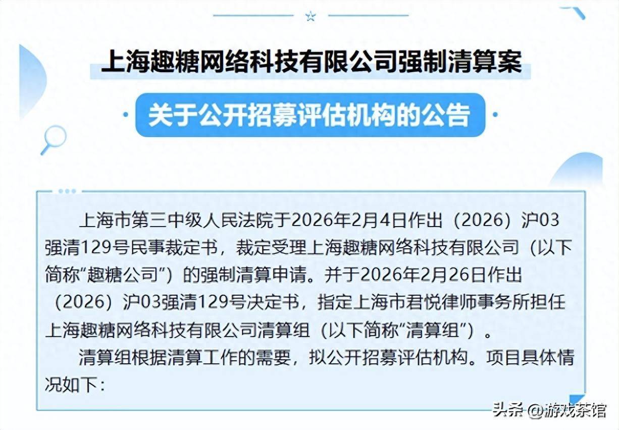 上周,担任趣糖网络破产管理人的君悦律师事务所发布公告,公开招募评估机构,以评估主要由《米姆米姆哈》组成无形资产价值。标志着趣糖网络破除清算进一步推进。